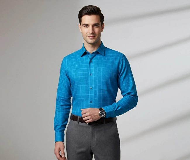 Celebrity Premium Blue Colour with Narrow Design Checks (Full Sleeve)