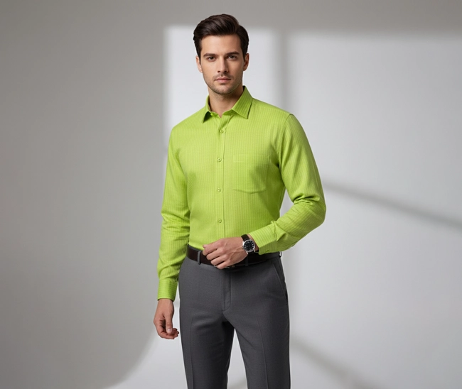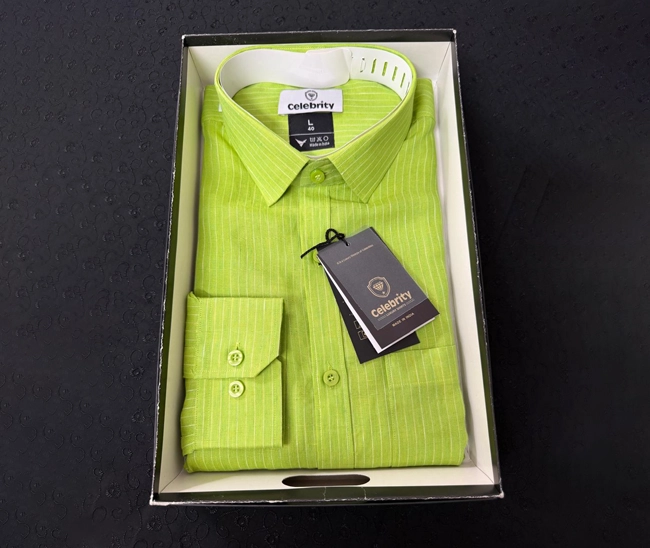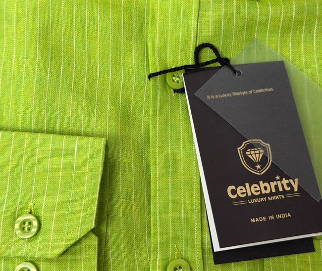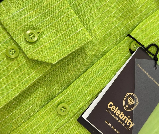 Celebrity Premium Linen Shirts Light Green Colour with Narrow Cream LinesCelebrity Premium Light Green Colour with Narrow Cream Lines (Full Sleeve)
