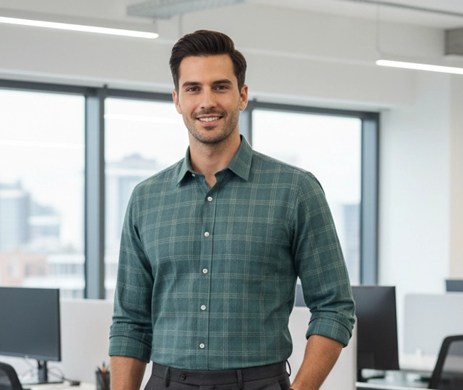 celebrity royal class linen cloth dark green with golden line checks (full sleeve)Celebrity Royal Class Linen Cloth Dark Green with Golden Line Checks (Full Sleeve)